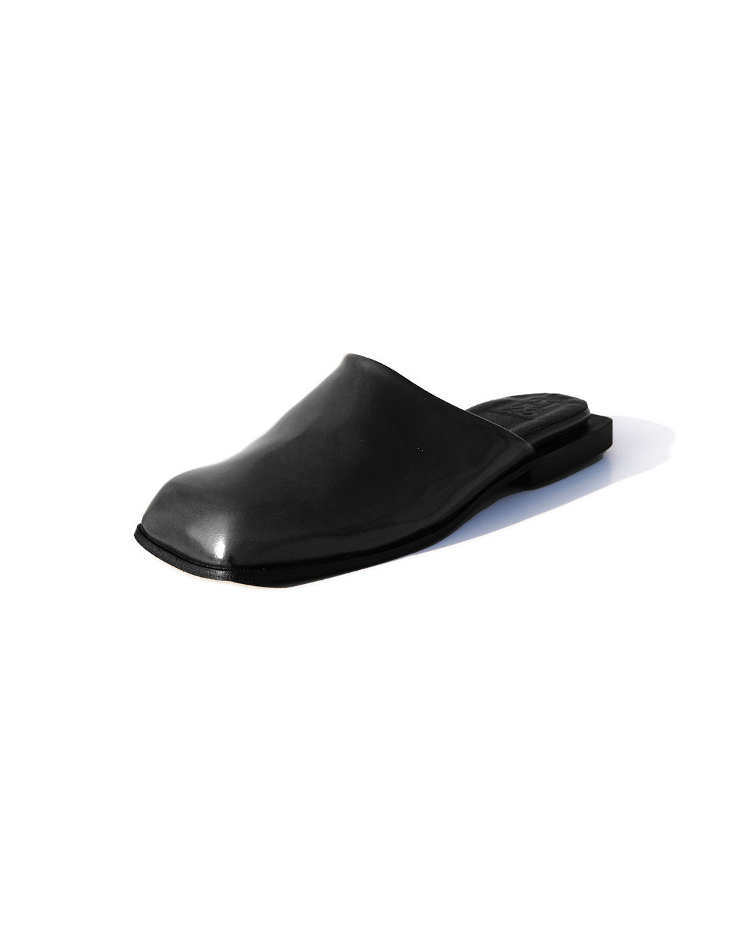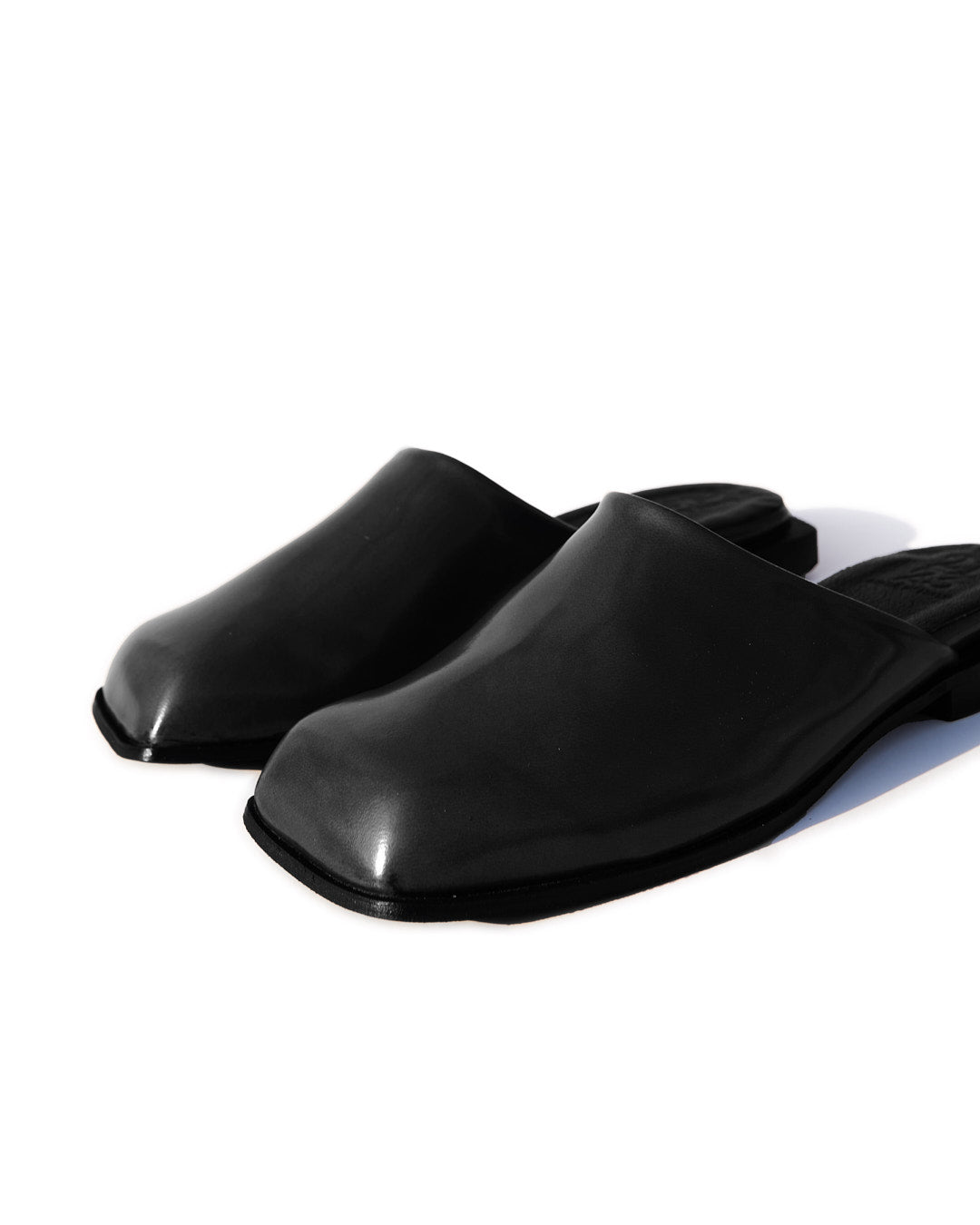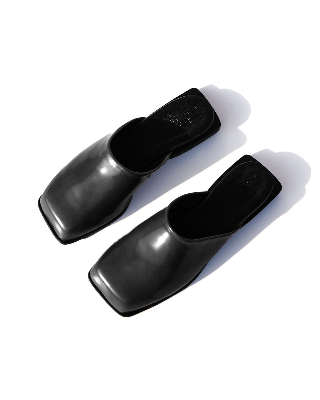 Realizzato in pelle di vitello nera, con suola monoblocco in microlite e tacco basso da 1 cm, unisce artigianalità e funzionalità con eleganza scultorea.