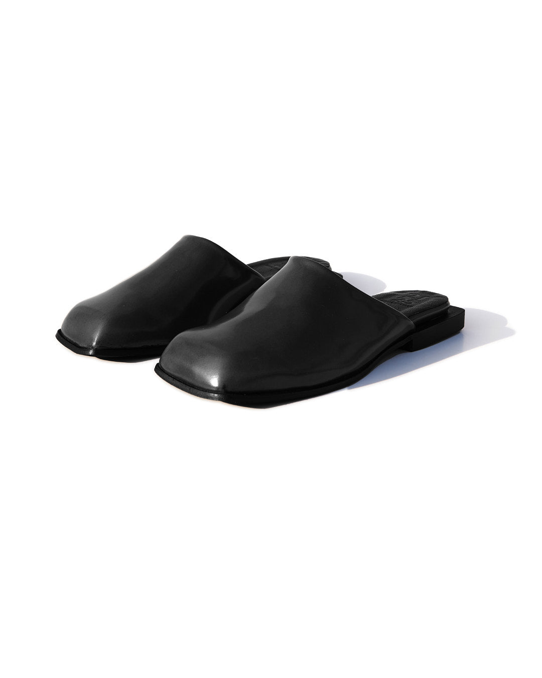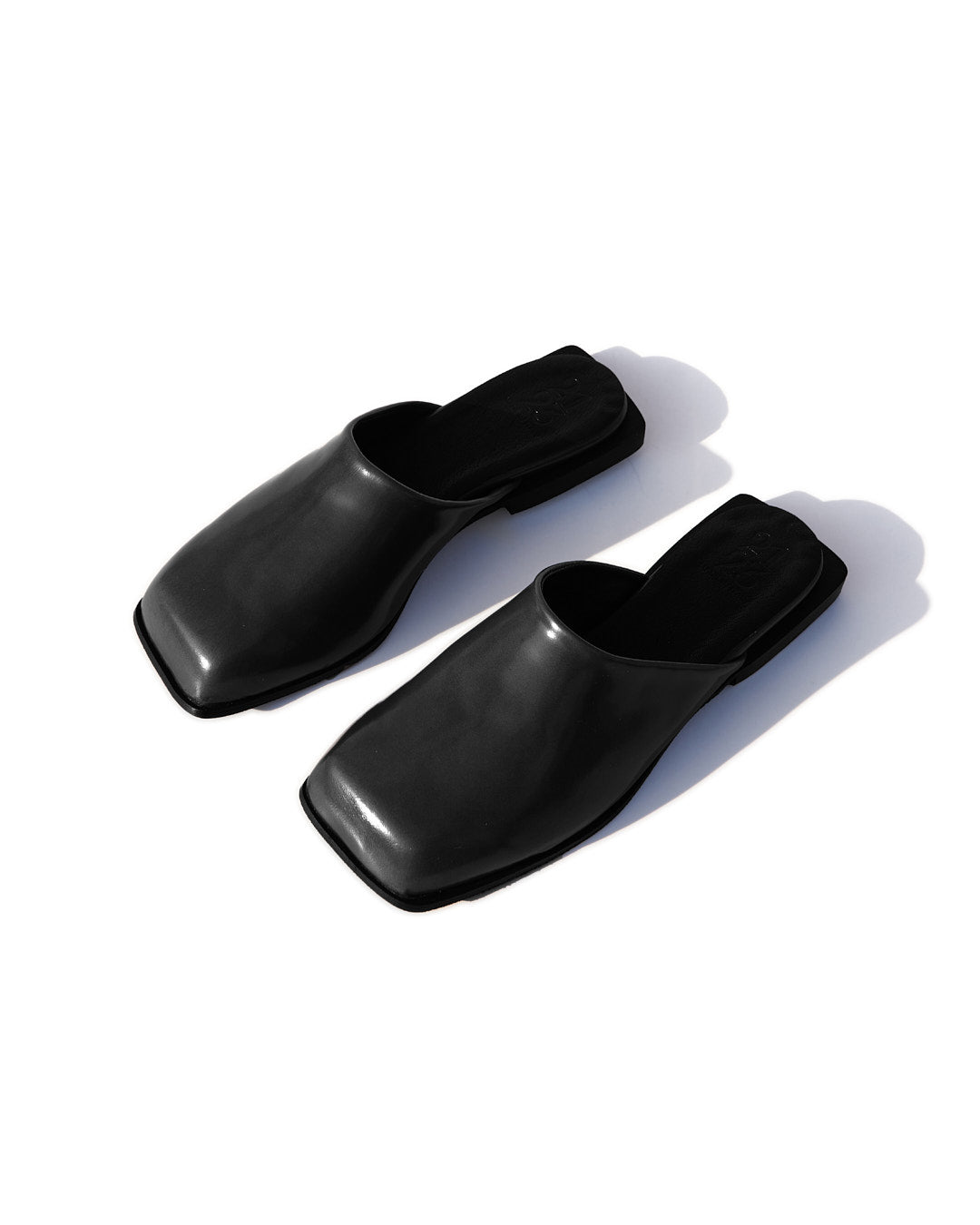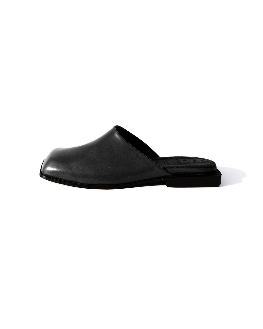 Realizzato in pelle di vitello nera, con suola monoblocco in microlite e tacco basso da 1 cm, unisce artigianalità e funzionalità con eleganza scultorea.